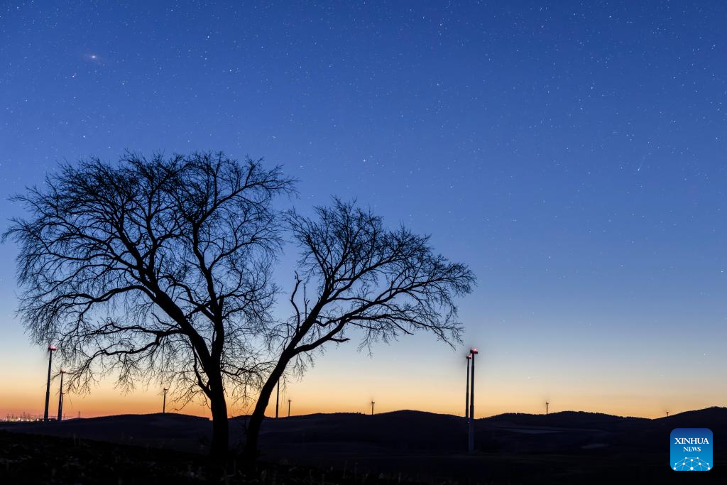 This photo taken on April 15, 2026 shows the comet C/2025 R3 in the sky over Fujin City, northeast China’s Heilongjiang Province. (Photo by Geng Xiqing/Xinhua)