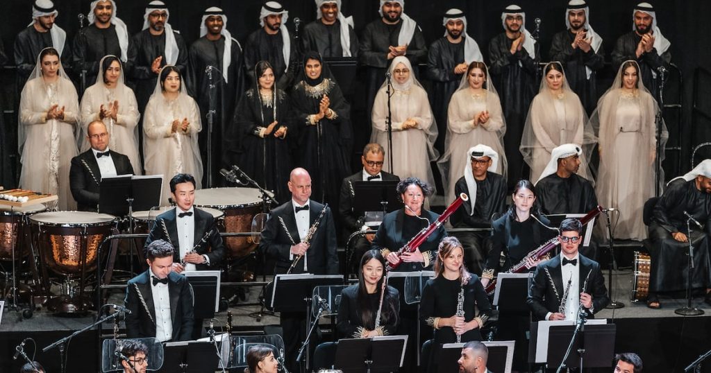 “Music itself, and the way it is played, is really the voice of the UAE. It is varied and evolving, but still rooted and carries an authentic core,” he says. “And the choir is an essential part of that because for Arab audiences, it is the words that often carry the memory as strongly as the melody.”