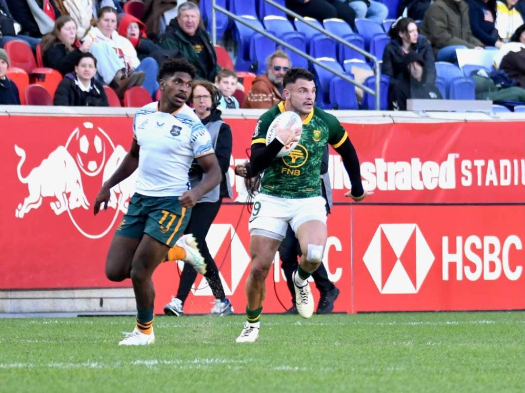 David Brits on the charge for the Blitzboks against Fiji in New York on 14 March 2026.