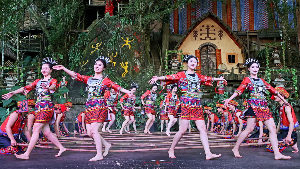 Folk performances are a highlight at Binglanggu, which has been built around the existing villages of Li and Miao ethnic groups. (PHOTO / CHINA TOURISM NEWS)