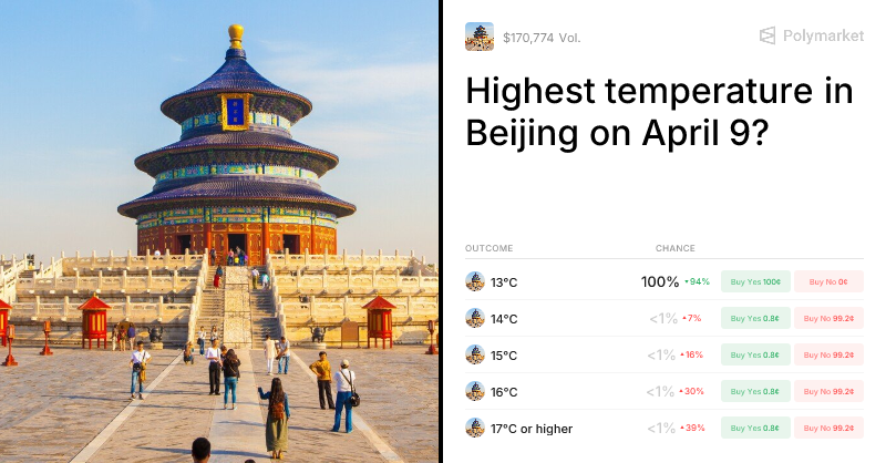Home»Explore cities»Beijing»Highest temperature in Beijing on April 9? Trading Odds & Predictions (Apr. 9, 2026)