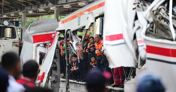 The crash occurred on Monday (local time) when a long-distance train crashed into the rear car of the stopped commuter train at Bekasi Timur Station outside Jakarta. The car was one designated for women only, a common accommodation to stop harassment.
