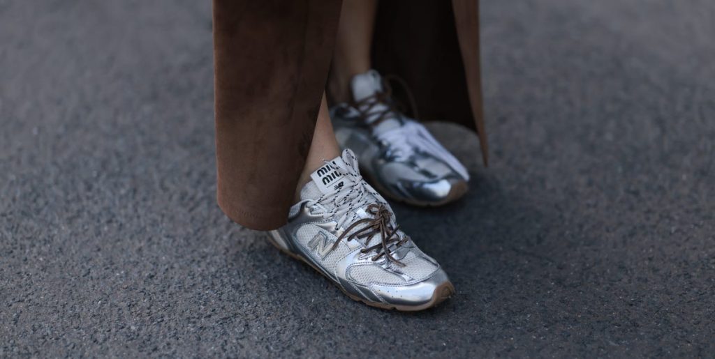 In step with the broader return to early-2000s style, metallic leather sneakers have reemerged as a fashion crowd staple. A clear favorite during Fashion Month was the silver variety, worn with everything from flouncy skirts for a playful feel to baggy jeans and monochrome trousers. Played right, they can even work for more formal occasions, like dressier dinners or special events.
