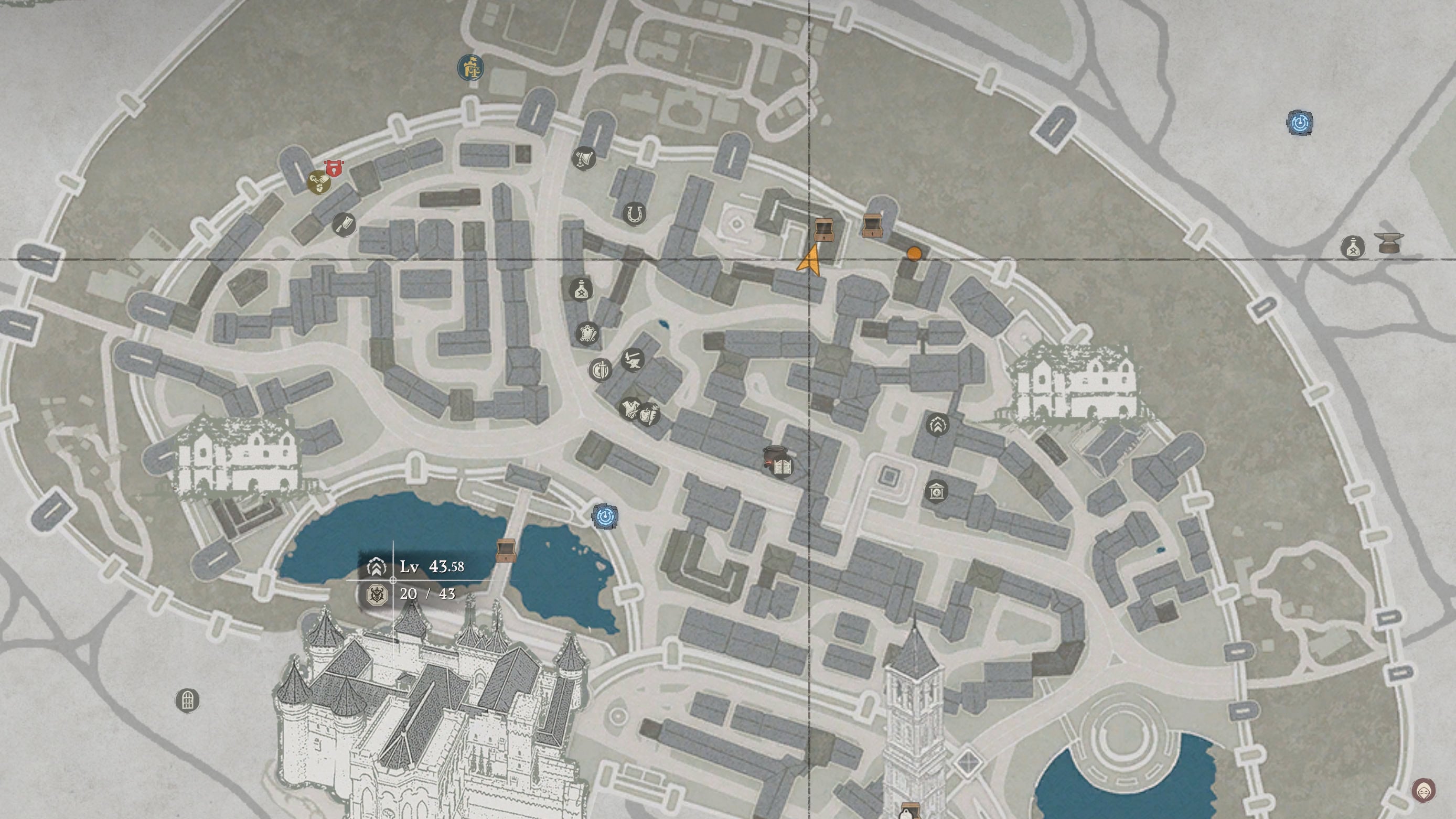 Climb the tower on the southwest side. Below the protruding slab near the top, there is a narrow wall you can push inward to access the hidden room with the treasure chest.