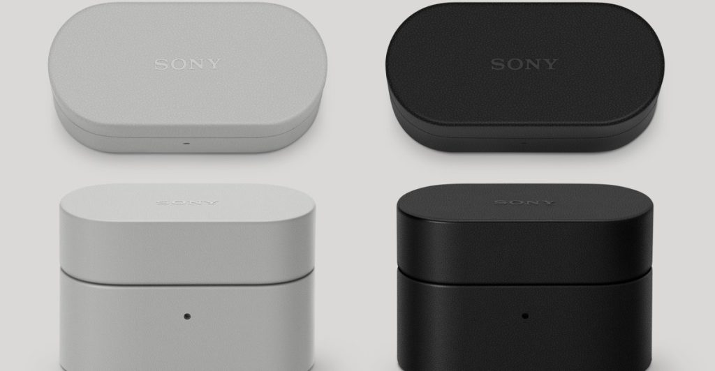 Multiple photos of Sony’s WF-1000MX6 earbuds vegan leather case covers.
