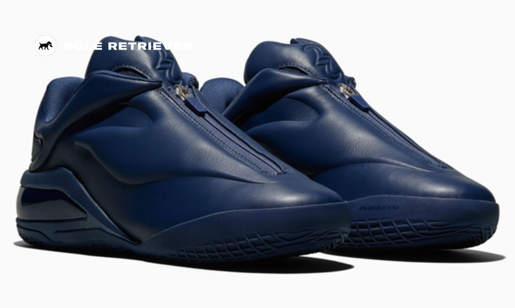 The Converse Shai 001 Ink looks like it fell off a shelf in a designer showroom, featuring a full coat of the kind of plush leather that looks soft in photos. The deep navy shade covers the entire shoe, minus a bit of silver popping out from the zipper running down the tongue, adding the same color to the sockliner, midsole, and nearly-invisible tongue logo.