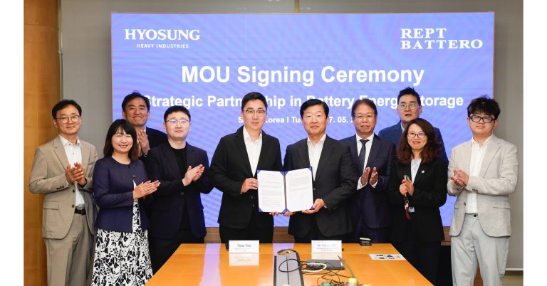 SHANGHAI, May 30, 2025 /PRNewswire/ — On May 27, 2025, REPT BATTERO and Hyosung Heavy Industries formally signed a Memorandum of Understanding (MoU) in Seoul, South Korea, focusing on battery energy storage systems. REPT BATTERO will supply 2.5GWh of energy storage products, jointly promoting the application and popularization of energy storage technology in the global market.