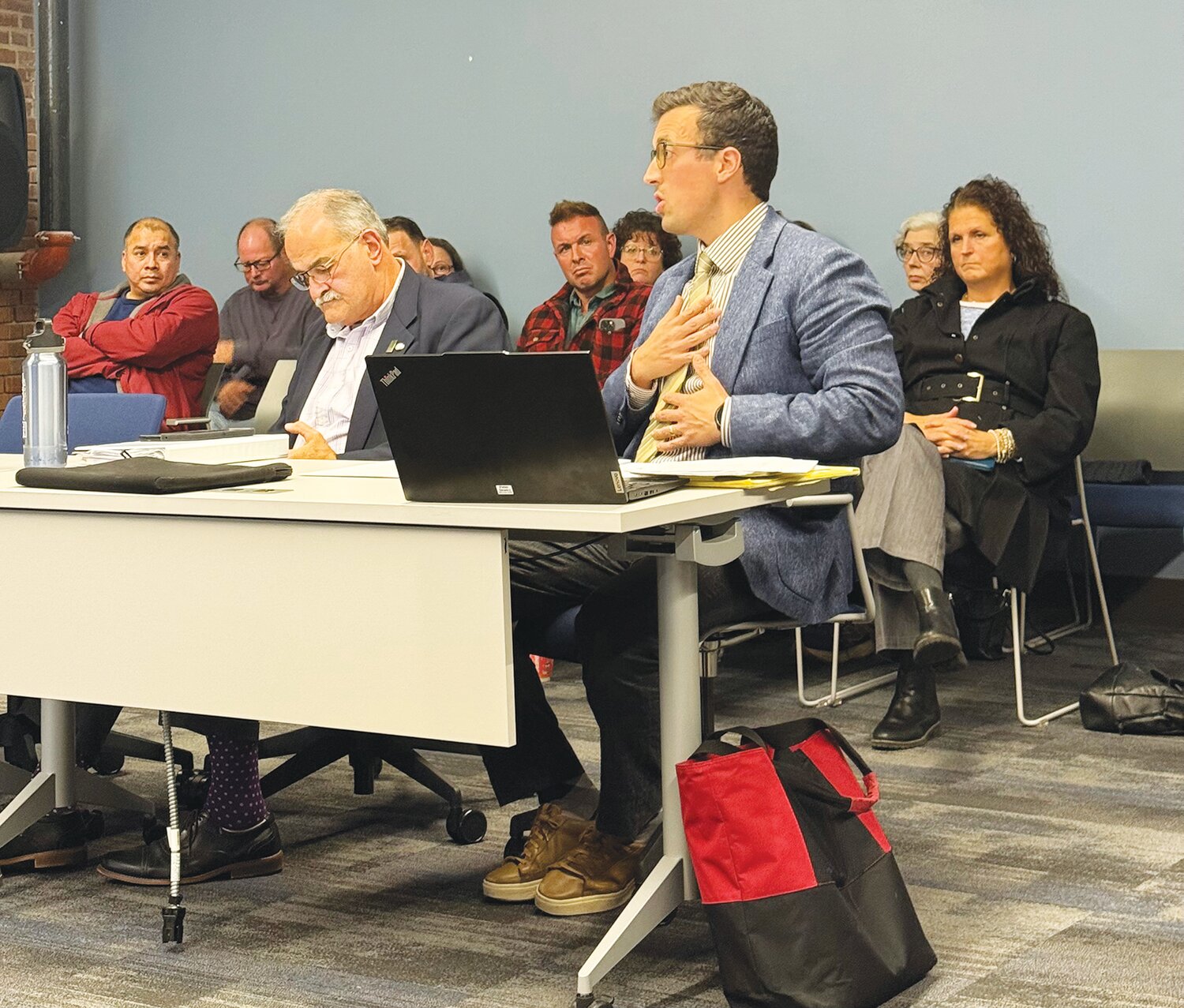 The board continued to hear witness testimony from the appellants, a planning director from another municipality, a neighbor, a real estate broker with experience in Pawtuxet Village and DeCorte himself. 175 Post Rd. property owners Lee Beausoleil and Artak Avagyan did not speak, but their attorney, Hagop Jawharjian, participated in the questioning of witnesses.
