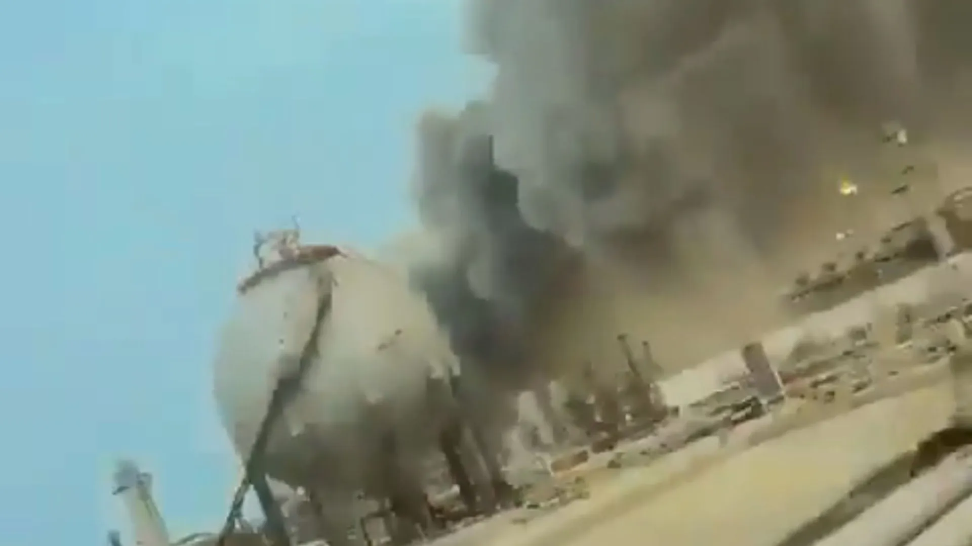 Shocking footage from Ras Tanura shows huge mushroom clouds of smoke rising above the facility.