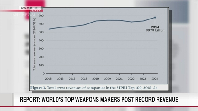 A Swedish think tank says the world’s top weapons producers posted record combined revenues last year due mainly to rising geopolitical tensions.