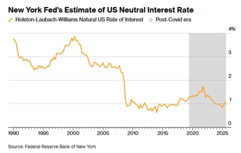 The so-called “natural rate of interest” — the short-term interest rate for an economy at full strength with stable inflation — has seen a “statistically significant rise” since 2019, climbing about a percentage point in the US and other advanced economies, New York Fed researchers Marco Del Negro, Elena Elbarmi and Michael Pham said in a blog post.