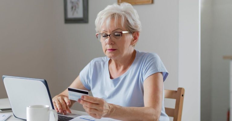 A woman checks her finances