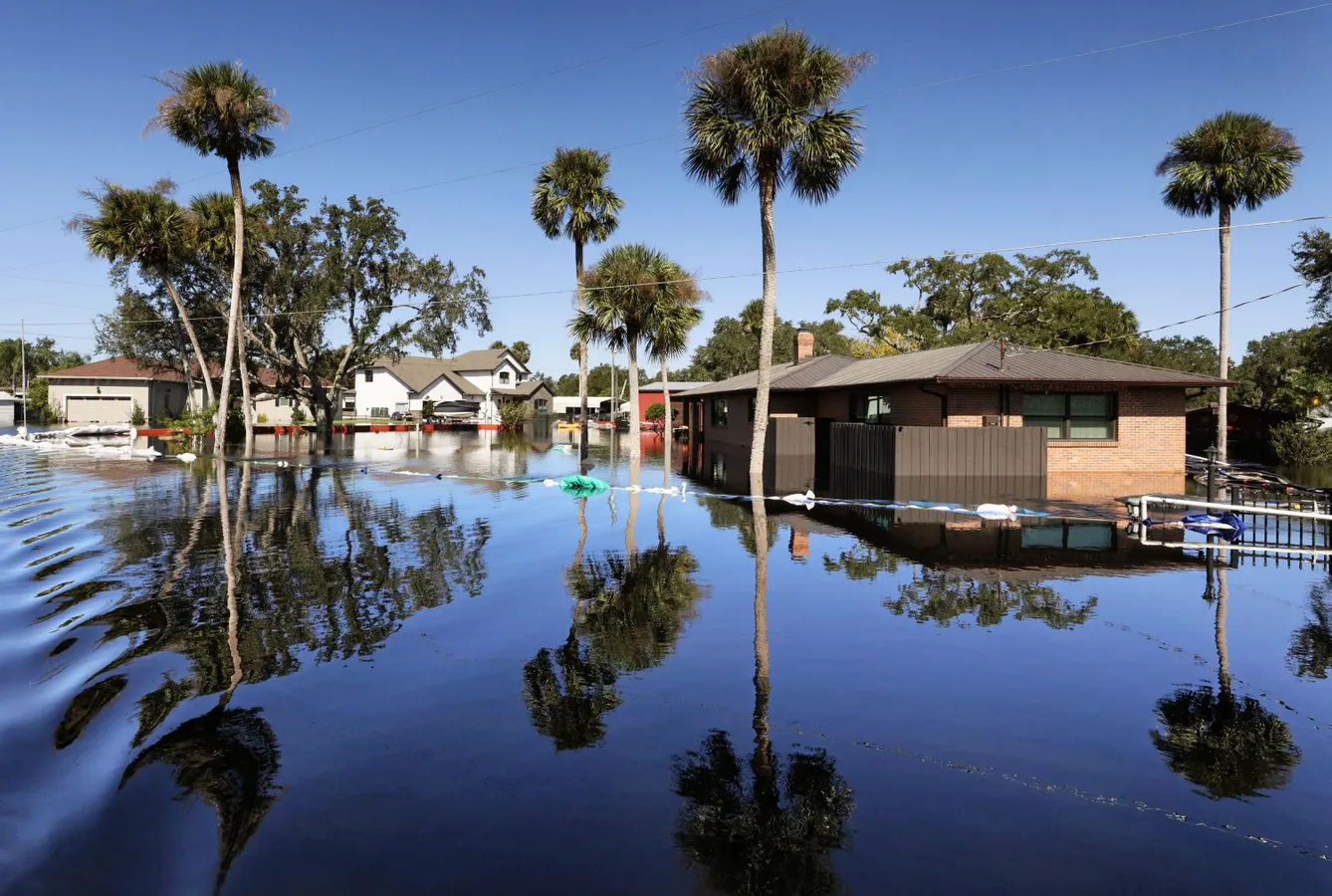 Houses In Geneva on Mullet Lake Park Road, are inundated by floodwaters from the St. Johns River after historic levels of rainfall from Hurricane Ian in 2022. (Joe Burbank/Orlando Sentinel/Tribune News Service via Getty Images)