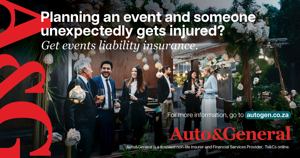 The Events Liability Insurance provides tailored coverage to the client, says Mhlambi. Auto & General will cover the individual business for the services they offer and the specific risks that come with them. They offer one-day policies and can go up to six weeks for longer-running events.