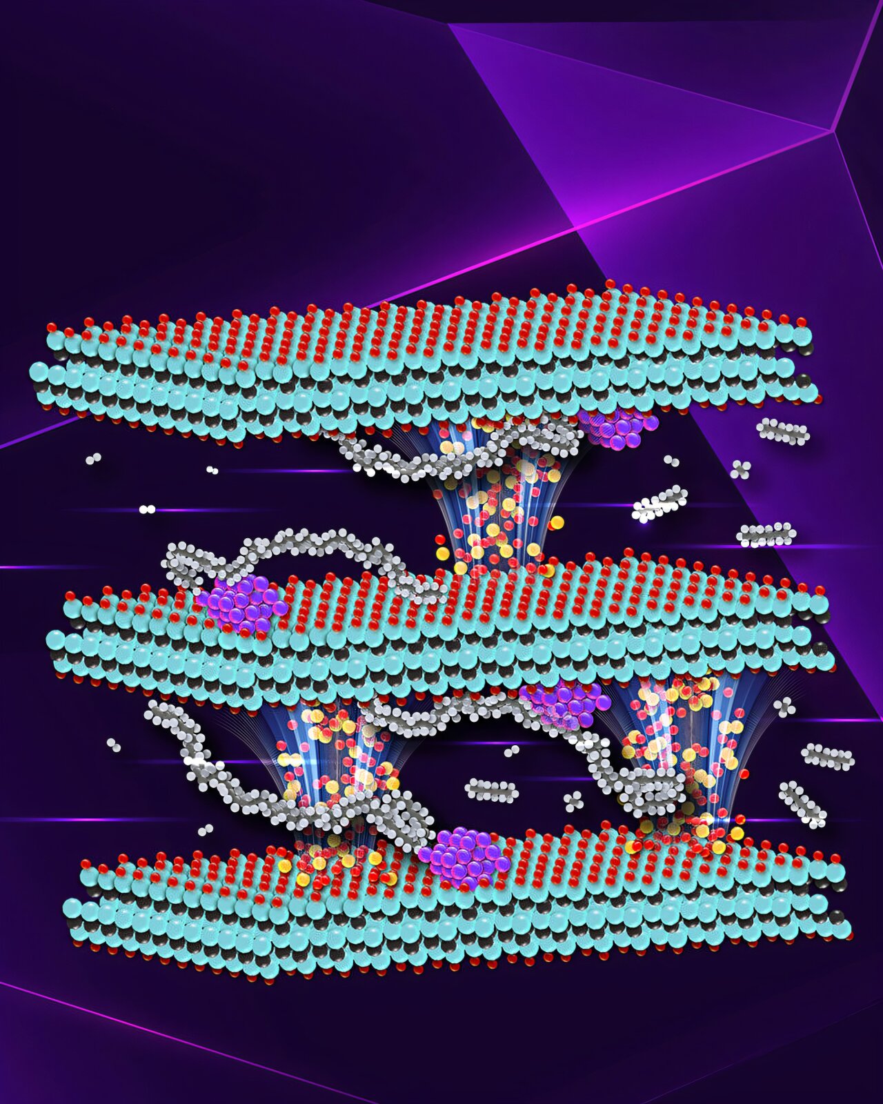 “To improve the design, we inserted silica pillars to open up the space between MXene layers, allowing the polymers and intermediate compounds that form during the reaction to flow more easily.”