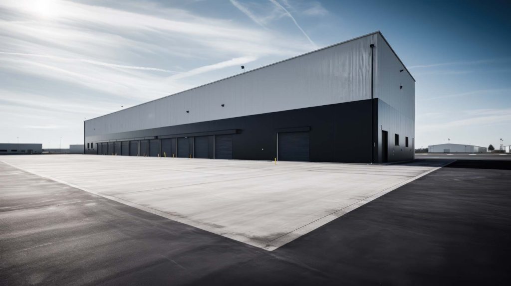 Modern logistics warehouse building structure. Generative AI