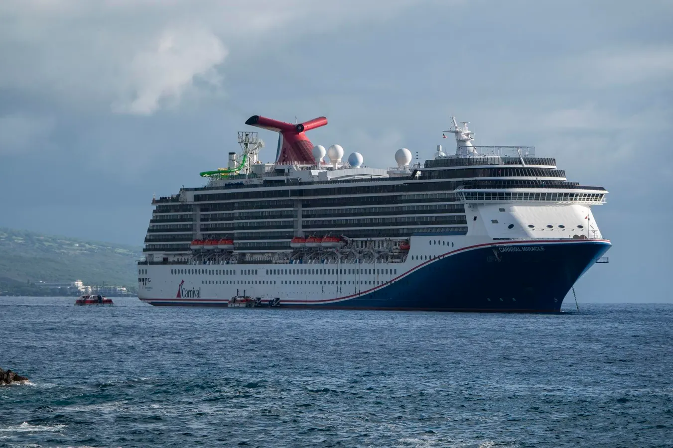KAILUA-KONA, HAWAII- JANUARY 14: The Carnival Miracle cruise ship is anchored in the Pacific Ocean near Kailua Bay during a 15-day cruise on January 14, 2024 in Kailua-Kona, Hawaii. (Photo by Kevin Carter/Getty Images)