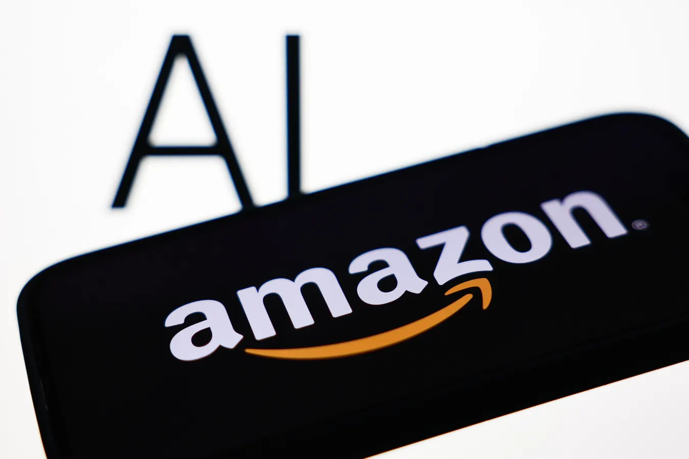 AI sign displayed on a screen and Amazon logo displayed on a phone screen are seen in this illustration photo taken in Krakow, Poland on December 23, 2025. (Photo by Jakub Porzycki/NurPhoto via Getty Images)