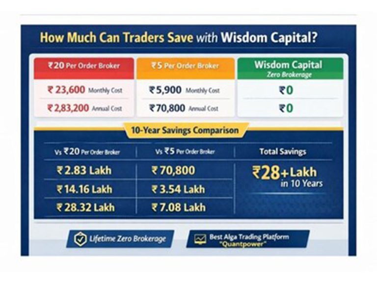 New Delhi [India], March 10: As retail participation in India’s stock markets continues to grow rapidly, Wisdom Capital is reinforcing its position as one of India’s most cost-efficient and technology-driven brokerage platforms. Having introduced its Lifetime Zero Brokerage trading model more than a decade ago, the company continues to offer traders the ability to significantly reduce transaction costs while benefiting from advanced trading technology.